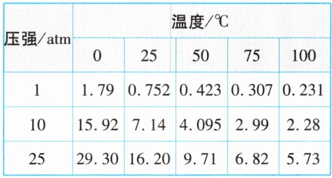 12. (1)以下是有关 CO₂气体在水中的溶解度(单位:mL)的几组数据:
