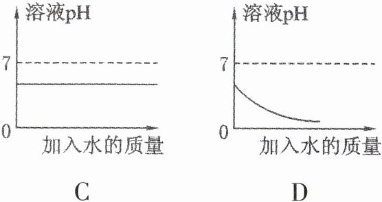 8. 向一定量的食醋中不断加水,溶液pH随水的质量的增加,其变化趋势正确的是 ( )