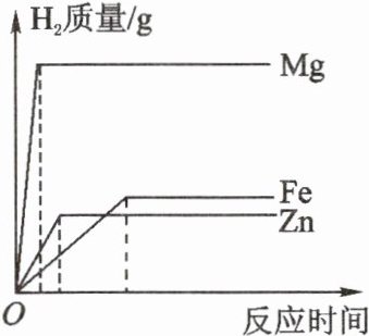 11. 相同质量的镁、铁、锌三种金属,分别与足量的、相同质量分数的稀硫酸充分反应,生成氢气质量与反应时间的关系如图所示。分析图像判断,下列说法正确的是 ( )