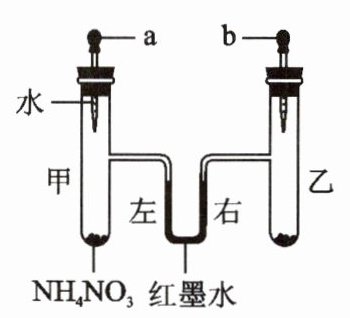 ③若一段时间后U形管内红墨水的左、右两侧液面又恢复原样,则b滴管中的液体药品和乙试管内的固体药品可能是②题选项中的_______。
