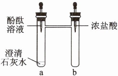(1)将无色酚酞溶液滴入a中,溶液颜色变为______;再将浓盐酸滴入b中,一段时间后,a中溶液褪色,说明Ca(OH)sub>2/sub>和HCl发生了反应,化学方程式为____________________。