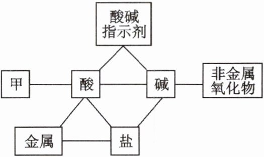 13. 构建思维导图是一种重要的学习方法。请根据酸、碱、盐的化学性质的思维导图,回答下列问题。(“—”表示相连的两类物质之间可以发生反应)