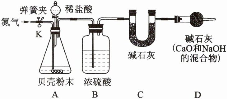 通过测量生成的二氧化碳的质量来计算12.5 g贝壳样品中碳酸钙的质量分数,所用仪器如图所示。