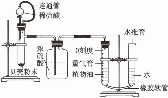 通过测量生成的二氧化碳的体积来计算贝壳中碳酸钙的质量分数,所用仪器如图所示。