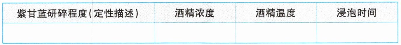 在制作紫甘蓝提取液过程中,可能会出现一些影响显色效果的因素。记录你们小组在制作提取液的过程中以下因素的相关数据。