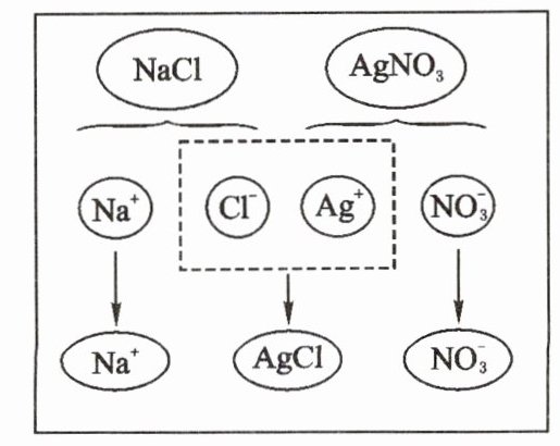 12. 复分解反应的实质是离子之间通过生成水、沉淀或气体发生反应。如图所示,稀盐酸和氢氧化钠溶液反应的实质是 H⁺ + OH⁻ = H₂O,则图中的氯化钠溶液和硝酸银溶液反应,实际参加反应的离子是 ( )