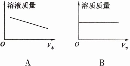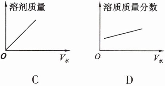 9. 某浓溶液加水稀释后变成稀溶液(稀释过程中溶液温度不变),下列能正确表示这一变化的是($V_{水}$表示加入水的体积) ( )