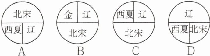 4. 图示法是我们学习历史的一种好方法,下面能正确反映北宋与少数民族政权并立的示意图是( )