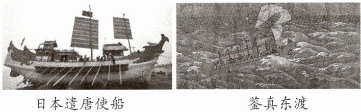 (1)途径:渡海;目的:学习中国的先进文化;贡献:把唐朝的先进文化传回日本,对日本社会的发展产生了深远影响。