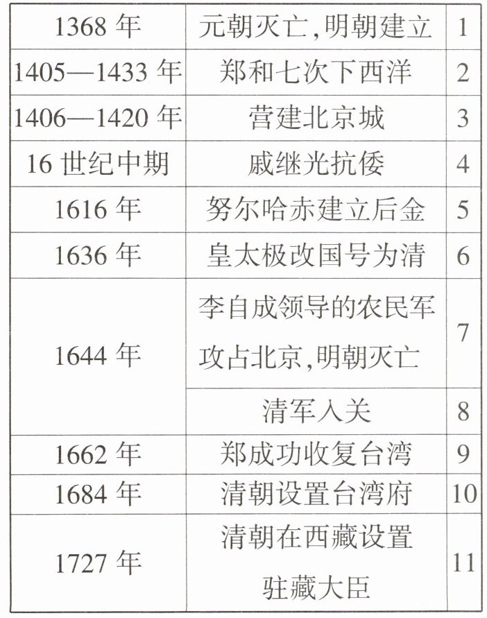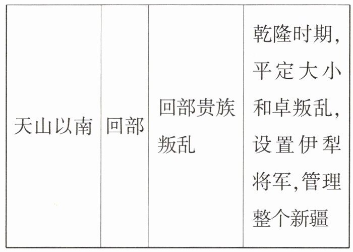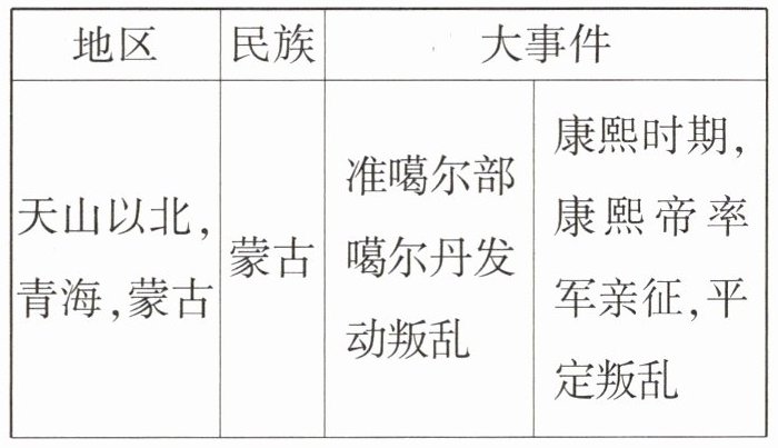 表格二:清朝前期巩固西北边疆。(意思相近即可)