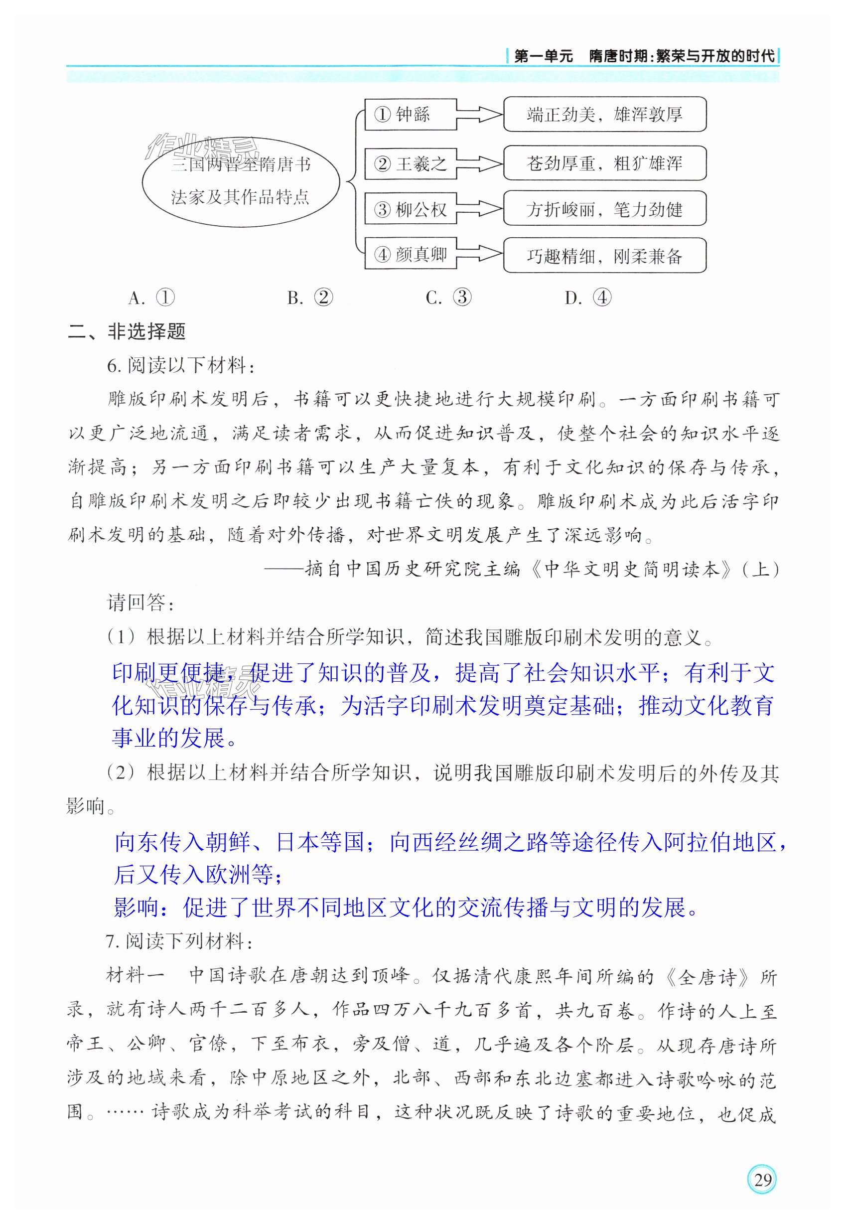 注:目前有些书本章节名称可能整理的还不是很完善,但都是按照顺序排列的,请同学们按照顺序仔细查找。练习册 2025年学习指要七年级历史下册人教版 答案主要是用来给同学们做完题方便对答案用的,请勿直接抄袭。