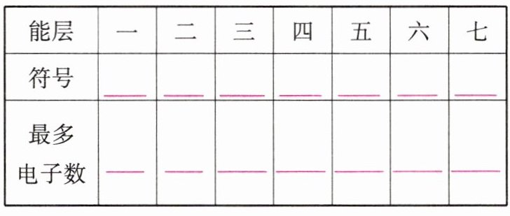 能量@@K@@L@@M@@N@@O@@P@@Q@@2@@8@@18@@32@@50@@72@@98@@$E(\text{K}) < E(\text{L}) < E(\text{M}) < E(\text{N}) < E(\text{O}) < E(\text{P}) < E(\text{Q})$