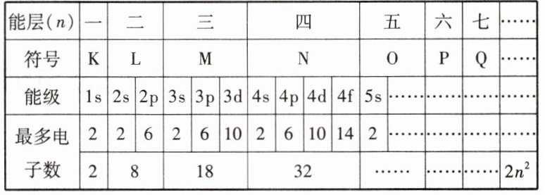 3. 能层、能级与最多容纳的电子数