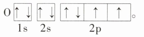 在轨道表示式中,用方框(也可用圆圈)表示原子轨道。O的轨道表示式如下: