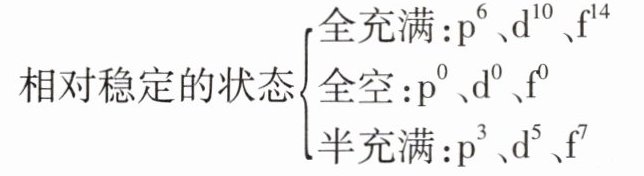 在简并轨道上的电子排布处于全充满、半充满和全空状态时,具有 的能量和 的稳定性。