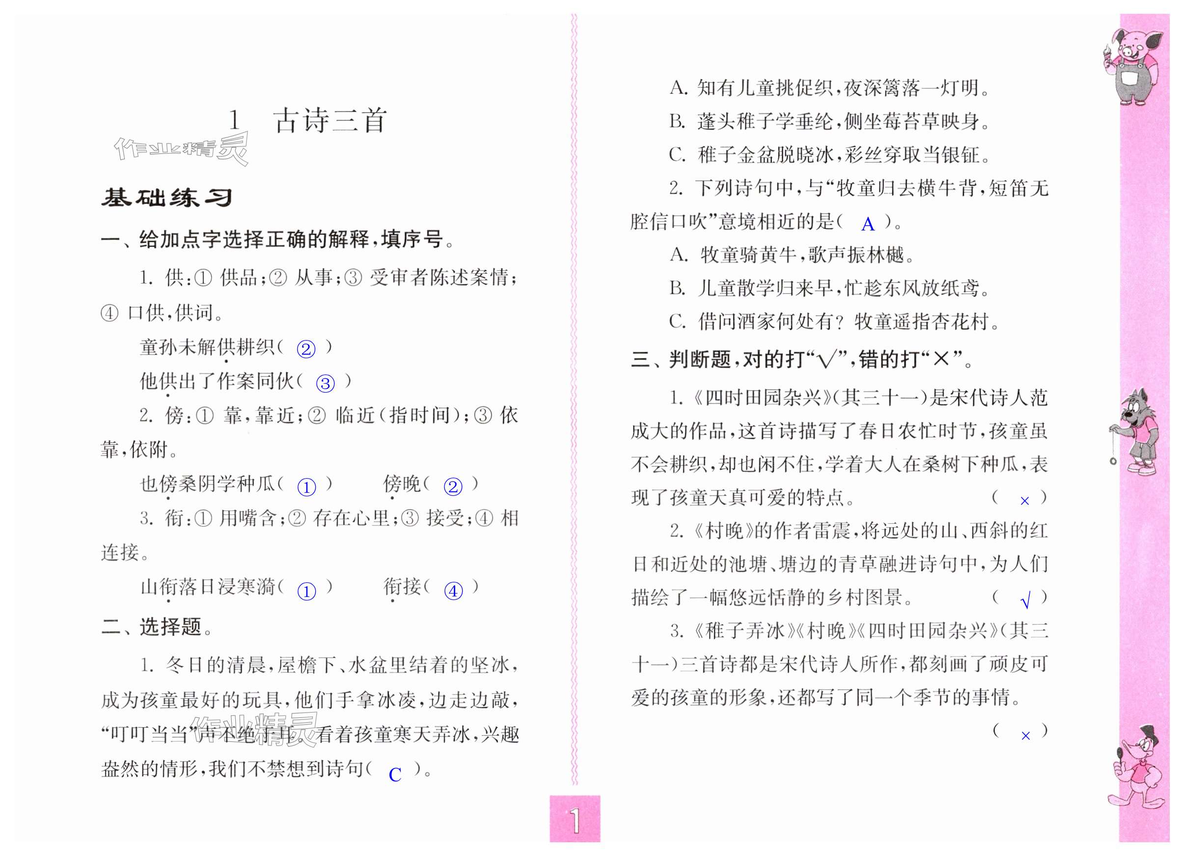 注:目前有些书本章节名称可能整理的还不是很完善,但都是按照顺序排列的,请同学们按照顺序仔细查找。练习册2025年练习与测试五年级语文下册人教版彩色版答案主要是用来给同学们做完题方便对答案用的,请勿直接抄袭。