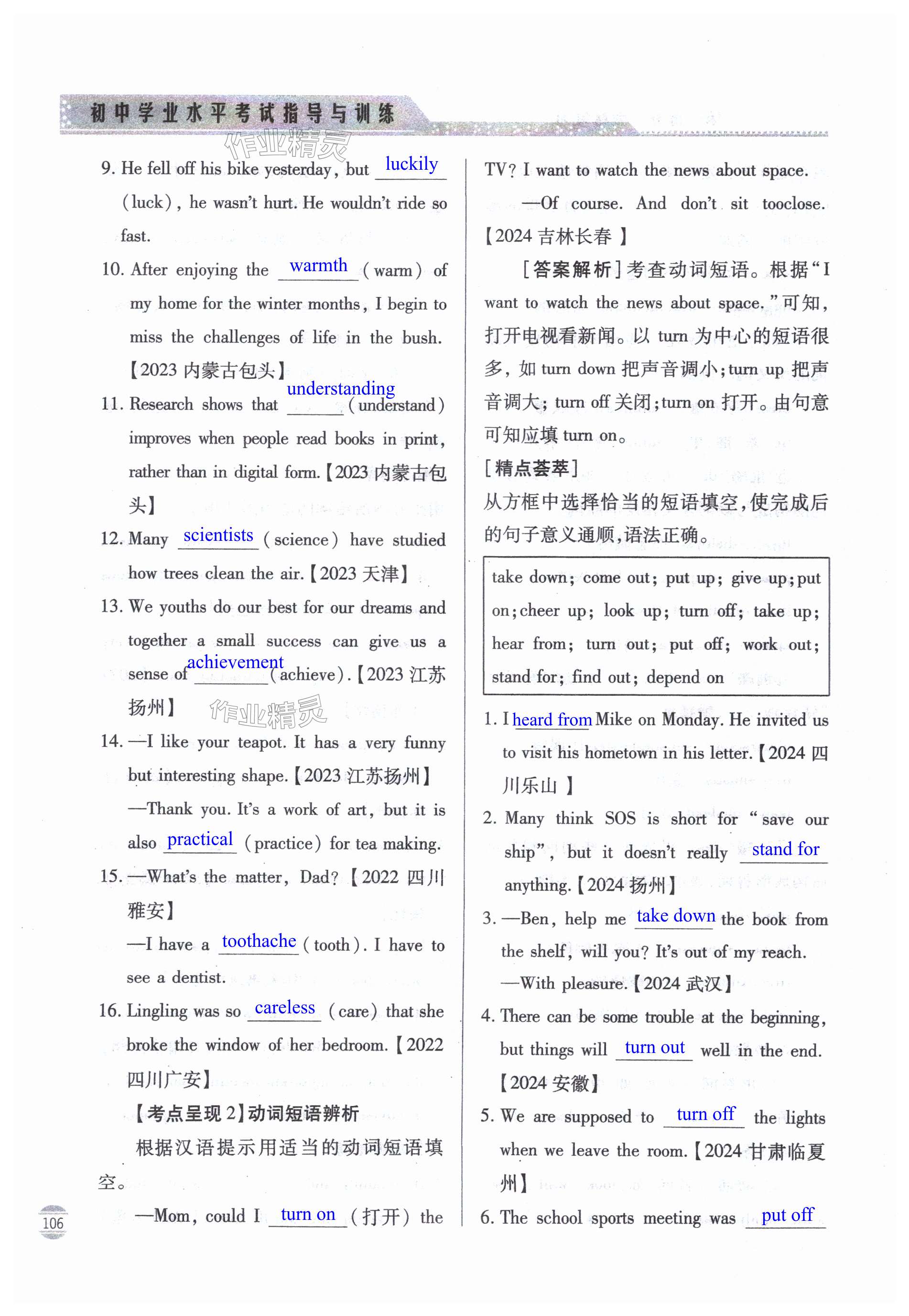注:目前有些书本章节名称可能整理的还不是很完善,但都是按照顺序排列的,请同学们按照顺序仔细查找。练习册 2025年初中学业水平考试指导与训练英语 答案主要是用来给同学们做完题方便对答案用的,请勿直接抄袭。