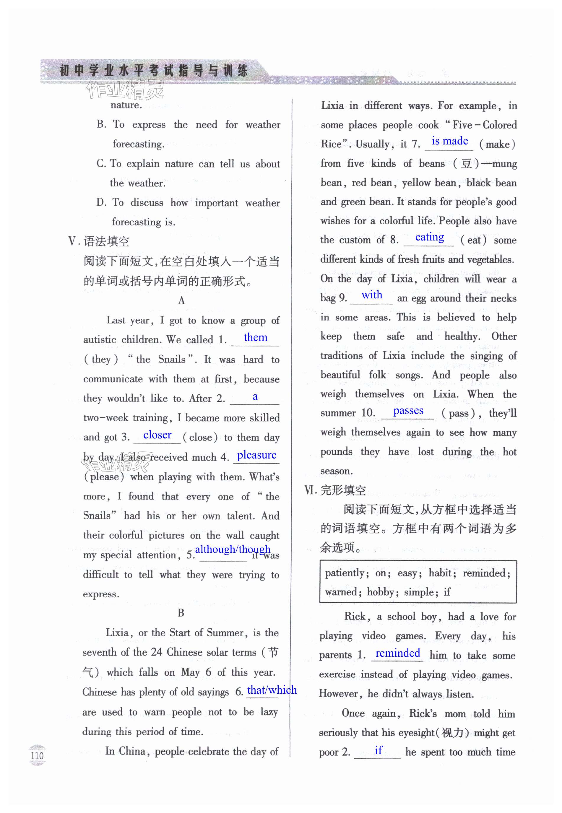 注:目前有些书本章节名称可能整理的还不是很完善,但都是按照顺序排列的,请同学们按照顺序仔细查找。练习册 2025年初中学业水平考试指导与训练英语 答案主要是用来给同学们做完题方便对答案用的,请勿直接抄袭。