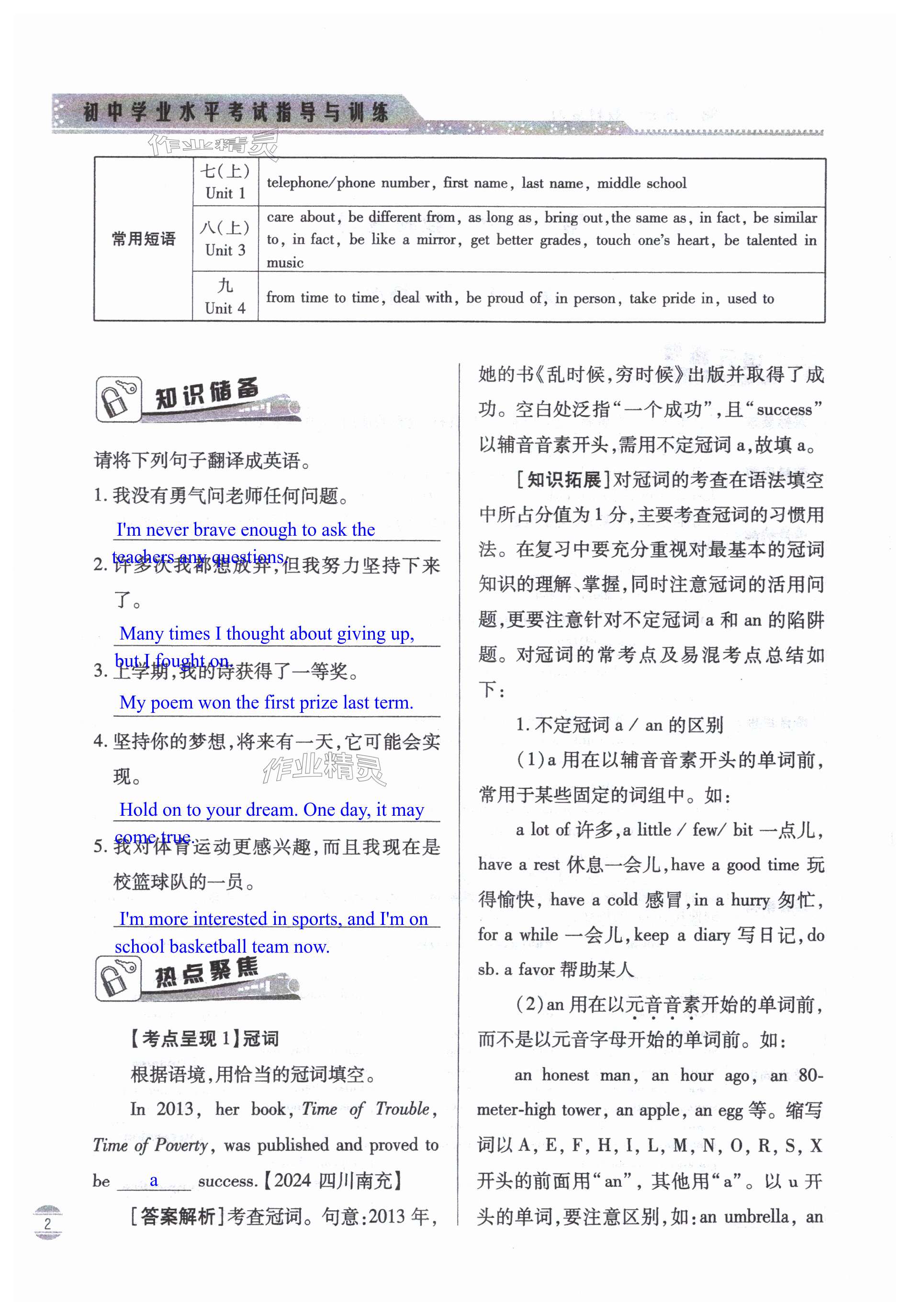 注:目前有些书本章节名称可能整理的还不是很完善,但都是按照顺序排列的,请同学们按照顺序仔细查找。练习册 2025年初中学业水平考试指导与训练英语 答案主要是用来给同学们做完题方便对答案用的,请勿直接抄袭。