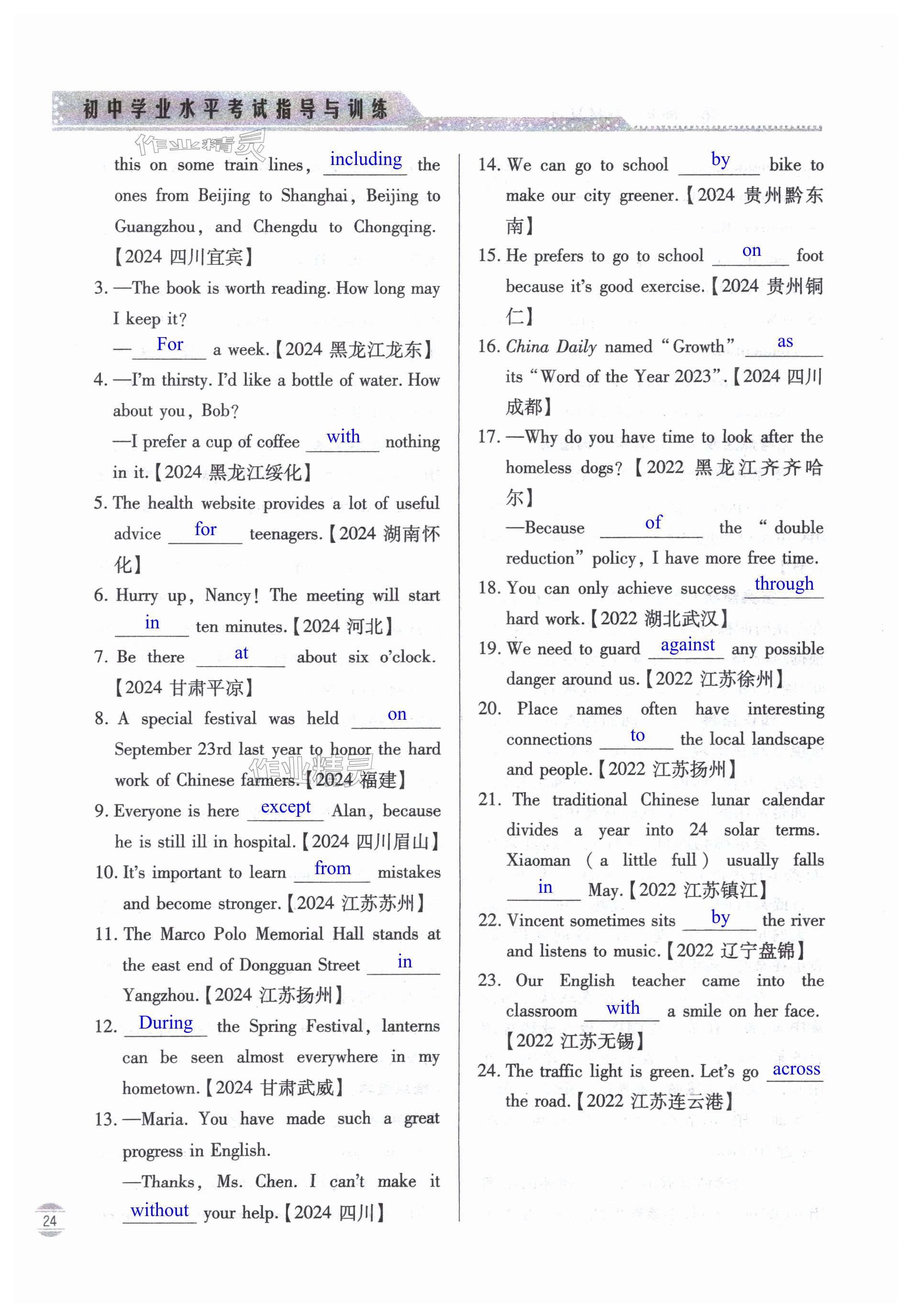 注:目前有些书本章节名称可能整理的还不是很完善,但都是按照顺序排列的,请同学们按照顺序仔细查找。练习册 2025年初中学业水平考试指导与训练英语 答案主要是用来给同学们做完题方便对答案用的,请勿直接抄袭。