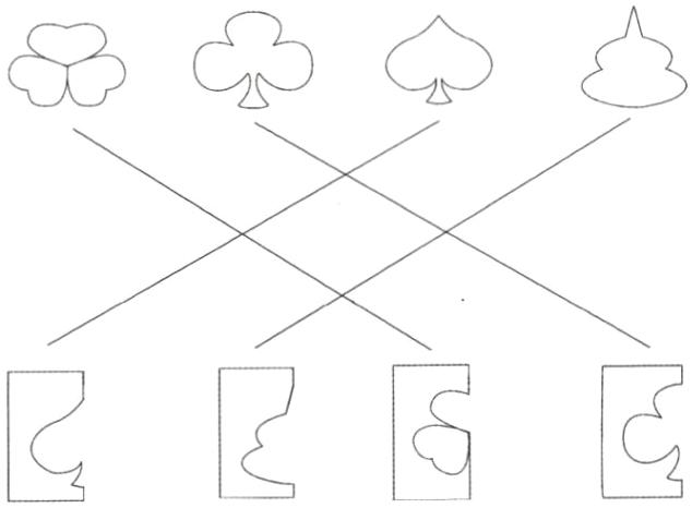 3.下面图形各是从哪张纸上剪下来的?连一连。(8分)