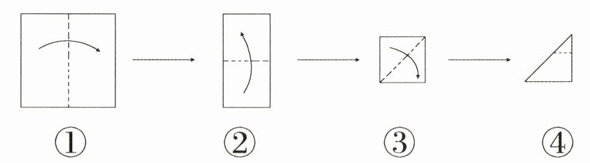 5.把一张正方形纸按下面的方法折叠,然后沿图④中的虚线剪去上面一小部分,请选出剩下部分的展开图,在下面的括号里画“√”。(4分)