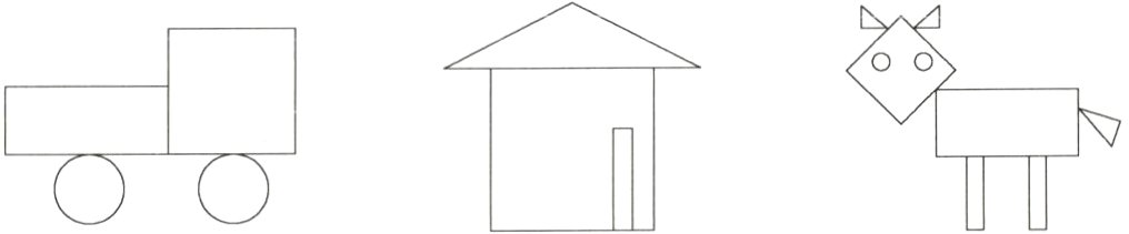 @@(1)长方形 正方形 (2)三角形 圆 (3)5 - 3 = 2(个)口答:最多的和最少的图形相差2个。