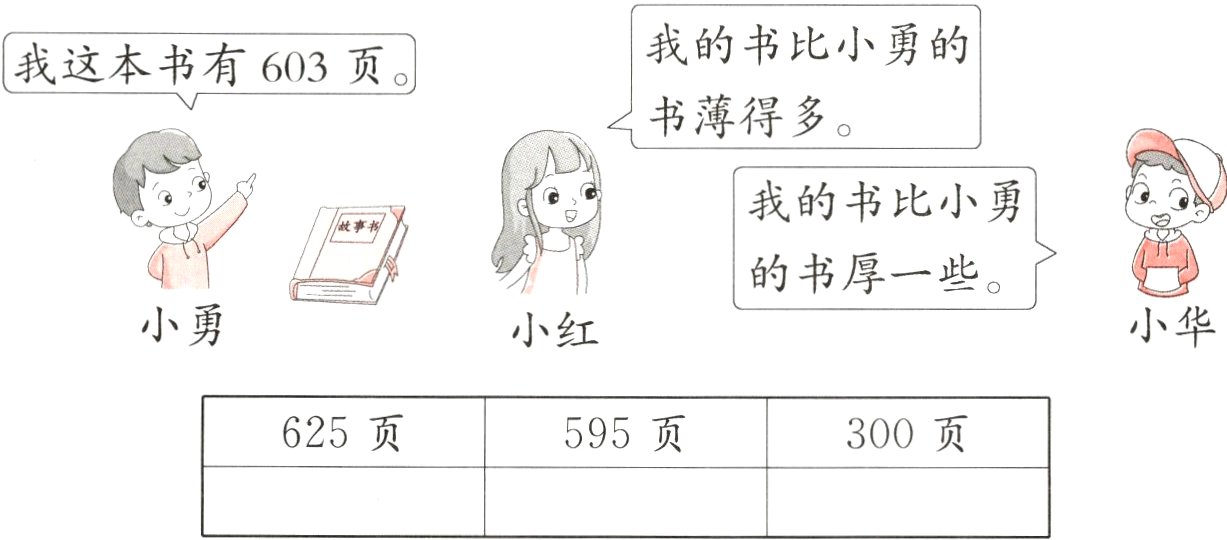 1. 小红的书可能有多少页? 画“√”。小华的书可能有多少页? 画“△”。(6分)