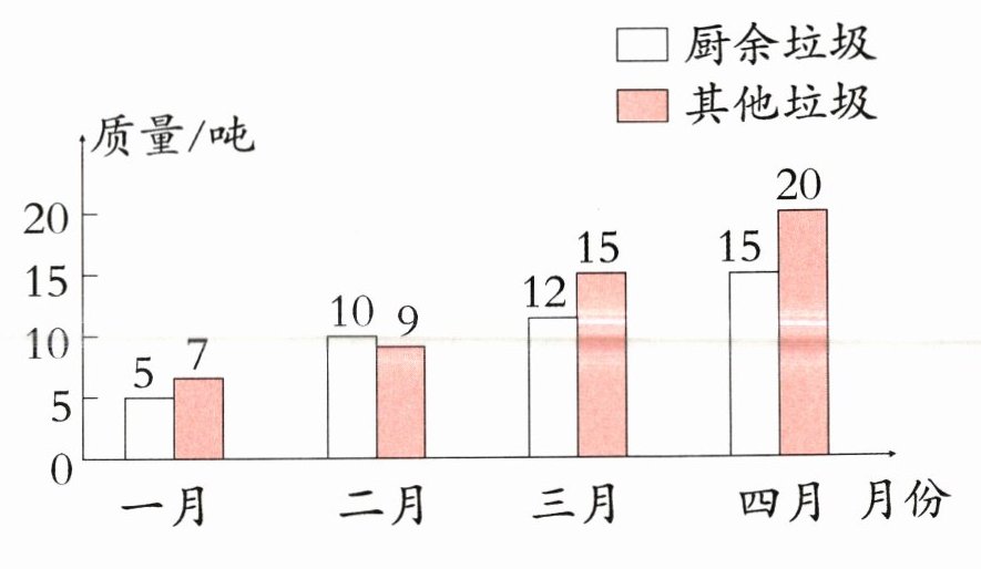 5. 如图是某小区在垃圾分类活动中厨余垃圾与其他垃圾的统计图。根据图中信息,下面( )的说法是错误的。