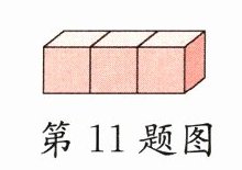 11. 如图,明明把3个小正方体粘在一起,表面积比原来减少16 cm²,原来1个小正方体的表面积是( )cm²,新长方体的体积是( )cm³。