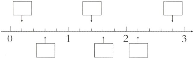 2. 在直线上面的框里填上适当的分数,下面的框里填上适当的小数。