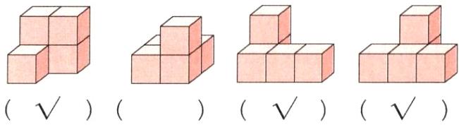 ,用5个小正方体摆一摆,下面哪些摆法是正确的?画“√”。(3分)