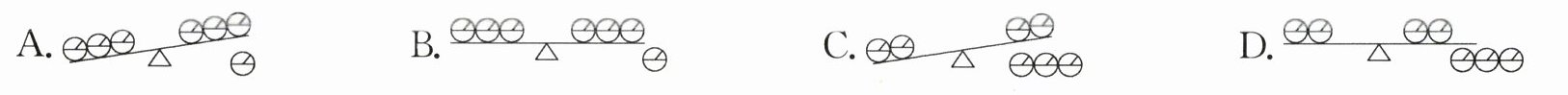 1. 有7盒口香糖,6盒一样重,另外1盒轻一些,如果要用天平称,下面表示称一次就刚好找出较轻的一盒口香糖的是( )。
