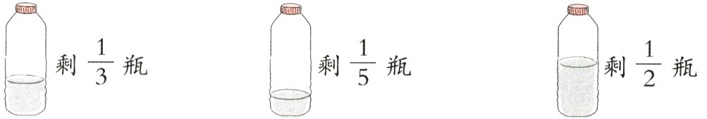 9. 龙龙请朋友们来家里玩,朋友们离去后,餐桌上剩下三瓶未喝完的饮料。剩下的饮料加起来比一满瓶( )。(填“多”或“少”)