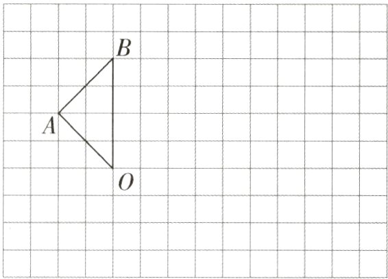 2. 画出三角形AOB向右平移三格后的三角形A'O'B'。画出三角形A'O'B'绕点O'顺时针旋转90°后的图形。(4分)