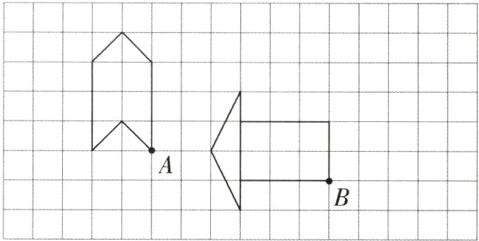 1. 把火箭图绕$A$点逆时针旋转$90^{\circ}$,把小房子图绕$B$点顺时针旋转$90^{\circ}$。(4分)