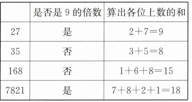 (2)观察表格,你发现9的倍数的特征是( )。(1分)
