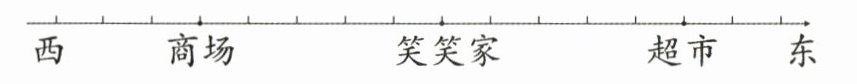 7. 如图,每小格表示100米,笑笑刚开始的位置是在自己家。如果笑笑从家向东行300米表示为+300米,那么她从家向西行200米可以表示为( )米。如果笑笑从家走到了超市,这时她的位置可以表示为( )米。如果笑笑从家出发走到了−600米处,这时她距离商场( )米。
