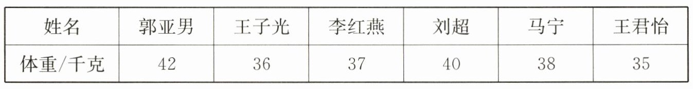 (1) 这6名同学的平均体重是( )千克。(3分)