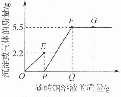 D 解析:由图中信息可知,OE段有气体生成,发生化学反应:Na₂CO₃+2HCl=2NaCl+CO₂↑+H₂O,故A说法正确;PF段是碳酸钠和氯化钙反应生成碳酸钙沉淀和氯化钠,反应的化学方程式:Na₂CO₃+CaCl₂=2NaCl+CaCO₃↓,故B说法正确;G点时碳酸钠溶液过量,溶液的pH大于7,故C说法正确;反应有先后顺序,Na₂CO₃先和HCl反应,故D说法错误。