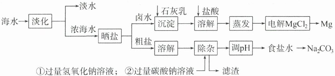 。(4)海水制“碱”:在用粗盐(含$ MgCl_2、$$CaCl_2 $杂质)制纯碱的过程中,除杂时,先后加入过量的氢氧化钠溶液和碳酸钠溶液,产生的沉淀是