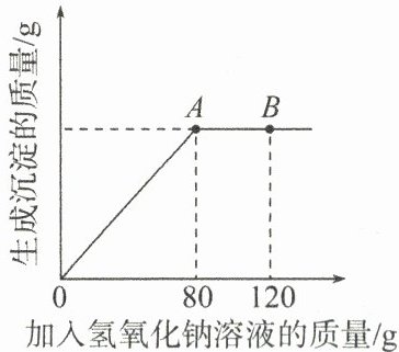 (2)为测定某 NaCl 固体样品(杂质为$ MgSO_4)$中 NaCl 的质量分数,化学小组的同学取该样品 20 g 置于干净的烧杯中,加入 100 g 蒸馏水,使固体样品完全溶解,再向所得溶液中逐滴加入溶质质量分数为 5%的氢氧化钠溶液,生成沉淀的质量与滴入氢氧化钠溶液的质量关系如图所示。请回答下列问题。