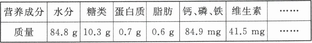 13.(5 分)柚子的果肉含有丰富的营养物质。下表列出的是每 100 g 柚子可食用部分的主要营养成分数据。