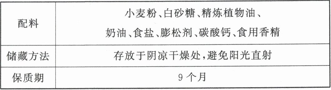 (2)不科学 该饼干中富含糖类、油脂、无机盐,缺少维生素、蛋白质、水,营养不均衡