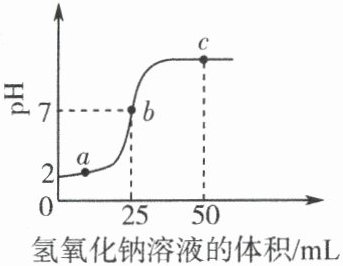 D 解析:a点时溶液的pH小于7,溶液显酸性,说明稀盐酸过量,所得溶液中的溶质为HCl和NaCl,故A错误;b点溶液的pH等于7,显中性,不能使紫色石蕊试液变红,故B错误;c点溶液的pH大于7,显碱性,证明氢氧化钠溶液过量,故C错误;氢氧化钠与稀盐酸反应生成氯化钠和水,a、b、c所示的溶液中均含有氯化钠,都含有Na⁺、Cl⁻,故D正确。