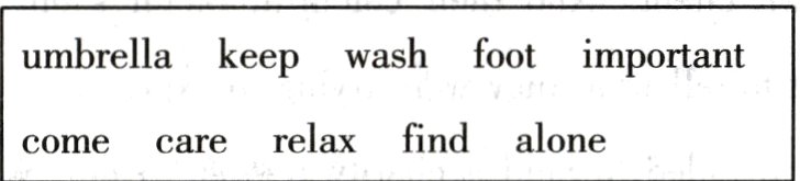 36. feet 37. important 38. washed 39. keepers 40. relaxed 41. find 42. umbrella 43. alone 44. came 45. cared