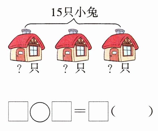 2. 15只小兔,住在3间房子里,平均每间房子住几只?