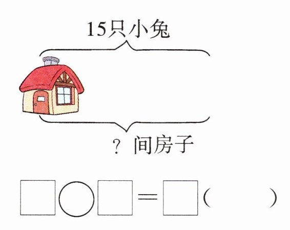 1. 15只小兔,每间房子住5只,需要几间房子?