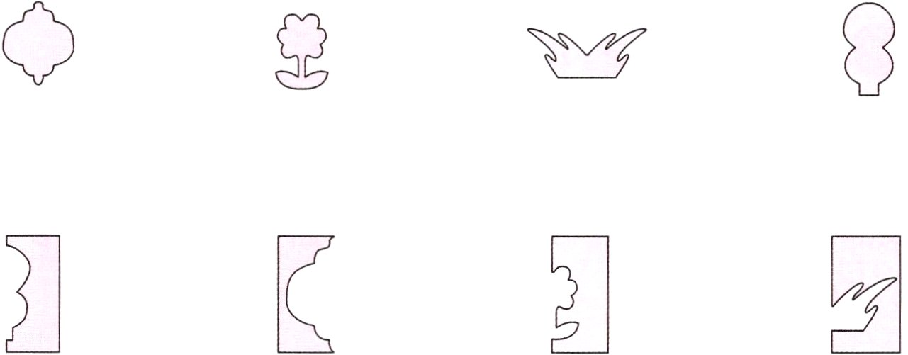 三、下面的图形分别是从哪个图上剪下来的,连一连。