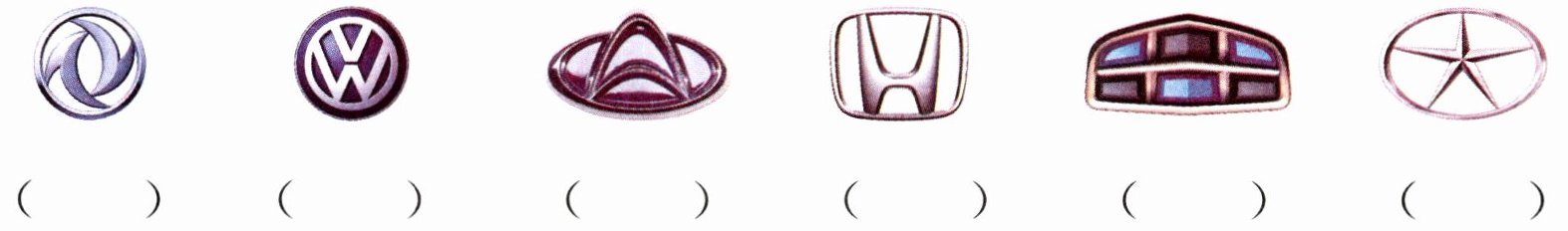 四、下面的汽车标志是轴对称图形的在括号里画“○”。